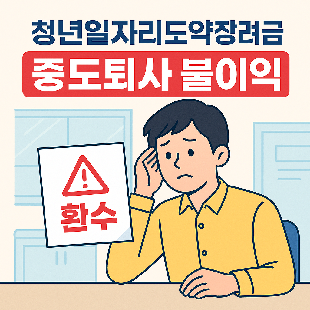 청년일자리도약장려금 수령 중 중도퇴사할 경우 어떤 불이익이 있을까요? 퇴사 시점에 따른 지원금 환수 여부, 기업과 청년 모두에게 미치는 영향까지 명확하게 정리해드립니다.